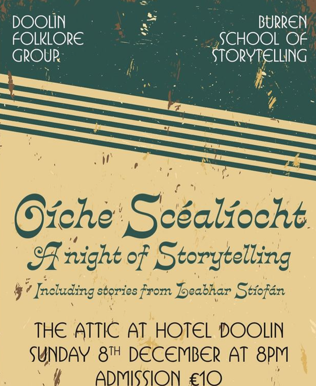 Storytelling with Doolin Folklore Group – Celebrating Stories from Leabhar Stíofán. Dec 8th at 8pm in The Attic.